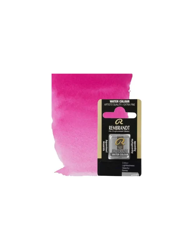 LasACUARELArelas Rembrandt están hechas con los pigmentos más puros y la mejor calidad de goma arábiga.Máxima transparencia, los colores conservan su luminosidad, máximo grado de resistencia a la luz.Las ACUARELArelas extra finas Rembrandt están exclusivamante fabricadas con materias primas de primera calidad y siguiendo los métodos de producción más modernos.ACUARELA REMBRANDT MEDIA PASTILLA 357 ROSA S1