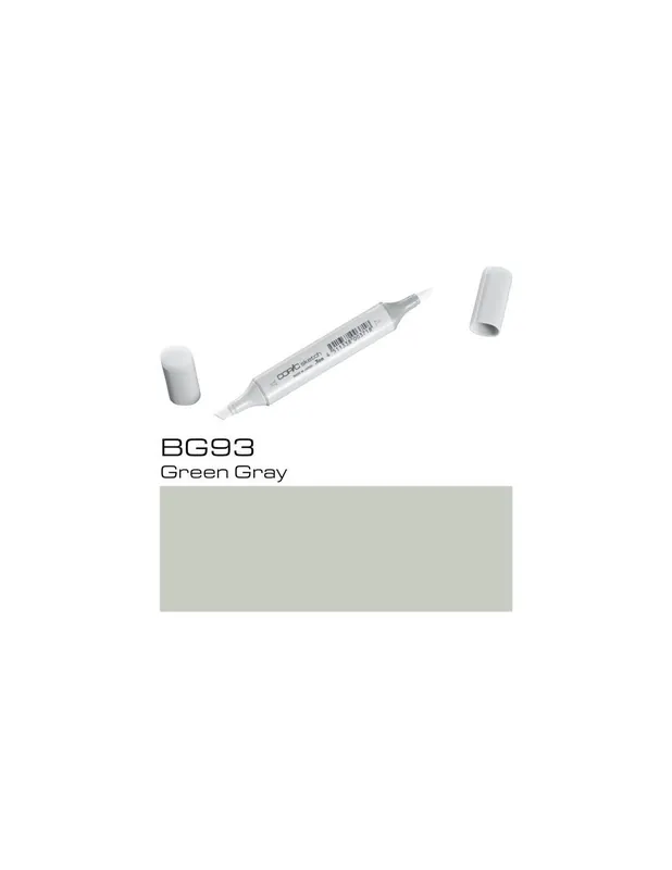 ROTULADOR COPIC SKETCH BG93 Green GrayCOPIC SKETCH BG93 Green GrayLos rotuladores copic sketch son los rotuladores preferidos de los profesionales del diseño, la ilustración, el dibujo manga y el scrap.Con sus 358 colores tienes todo un mundo de posibilidades a tu alcance, es la mayor gama de colores que existe en rotuladores, dificilmente no encontrarás aquella tonalidad que estás buscando.El rotulador copic sketch tiene dos puntas: una biselada para colorear grandes áreas y otra de pincel muy flexible ideal para dibujar. Las puntas se pueden cambiar cuando se gastan.Son rotuladores recargables, se puede volver a aprovechar la carcasa, con un frasco de tinta copic ink de 25 cc puedes rellenar hasta 12 veces un sketch.La tinta copic es a base de alcohol, es permanente y no es tóxica. Cuando se seca está libre de ácido.Los rotuladores copic sketch se pueden utilizar también con el sistema de aerografia copic.