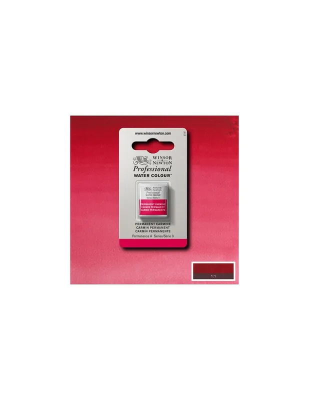 Se fabrican los colores con los pigmentos más finos y prestigiosos con alta concentración. Sutilmente mezclados con el aglutinante con goma arábica, ofrecen a los colores brillo, transparencia y resistencia perfecta a la luz. Cada matiz se fabrica siguiendo una receta precisa para conseguir la mejor calidad pictórica.La intensidad y la transparencia de las acuarelas superfinas de Winsor & Newton permiten dar realce a los matices y al grano del papel acuarela.Más de 170 años después, la acuarela húmeda original de Winsor & Newton? sigue formulándose y fabricándose de acuerdo con los principios fundadores: crear una gama de acuarelas sin igual que ofrezca a los artistas la selección más amplia y equilibrada de pigmentos con la mayor permanencia posible. Observando estrictamente dichos principios, logramos una viveza, transparencia y pureza de color que ninguna otra acuarela iguala. WINSOR & NEWTON MEDIA PASTILLACARMÍN PERMANENTE