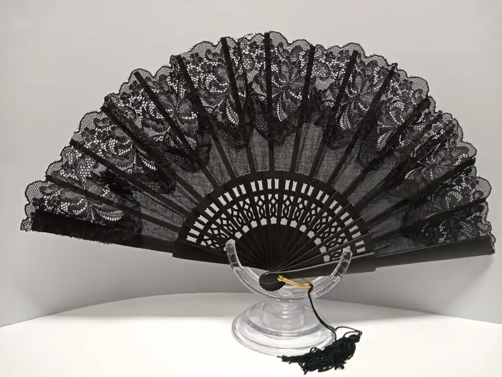 ABANICO MADERA CON ENCAJE Y PUNTILLA NEGRO Mayoreo