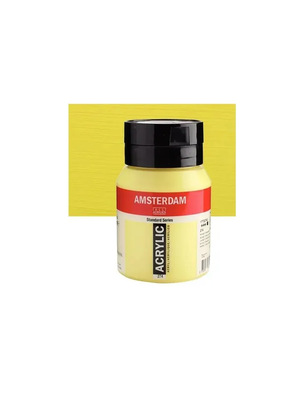 Los acrílicos amsterdam Standard Series ofrecen todo lo que el pintor de acrílico necesita para pintar: una pintura acrílica de excelente calidad y una gama con muchísimos colores a elegir, y que además nos permite obtener una película de pintura extremadamente duradera (el aglutinante es 100% resina de acrilato) para un resultado imperecedero.ACRILICO AMSTERDAM 500ML 274 AMARILLO NIQUEL TITANIO