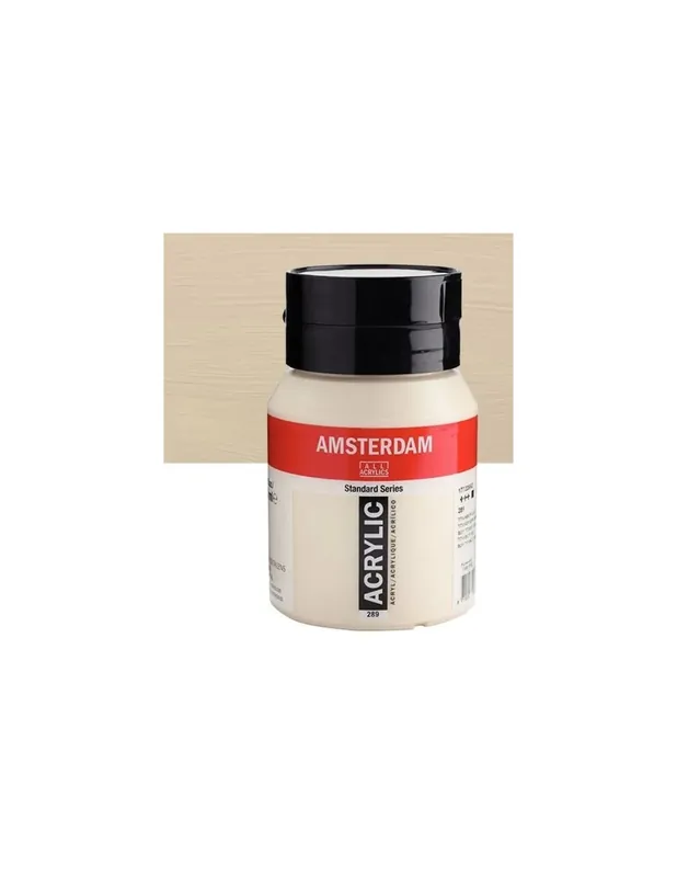 Los acrílicos amsterdam Standard Series ofrecen todo lo que el pintor de acrílico necesita para pintar: una pintura acrílica de excelente calidad y una gama con muchísimos colores a elegir, y que además nos permite obtener una película de pintura extremadamente duradera (el aglutinante es 100% resina de acrilato) para un resultado imperecedero.ACRILICO AMSTERDAM 500ML 289 BUFF TITANIO CLARO