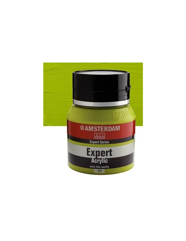Una pintura acrílica elaborada con sumo cuidado, los mejores ingredientes y una intensidad en sus colores sin precedentes. Todo lo que necesitas para hacer lucir aún más tu talento. ACRILICO AMSTERDAM EXPERT 400ML 617 VERDE AMARILLENTO SERIE 3