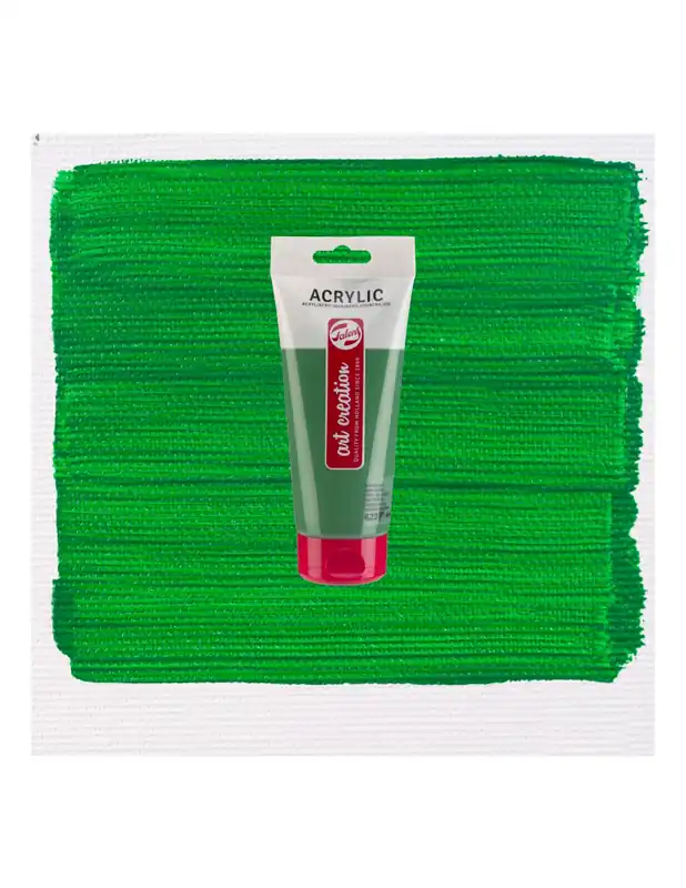 ArtCreation Essentials ofrece un acrílico estudio de calidad fiable a base del 100% de resina de acrilato. La pintura es pastosa, cuando está seca tiene un brillo sedoso y se puede sobrepintar casi de inmediato. La pintura acrílica Talens ArtCreation Essentials puede usarse directamente o diluido con agua, y una vez seco, es resistente al agua. Por su buena adherencia, con esta pintura se puede trabajar sobre cualquier sustrato que sea algo absorbente y esté libre de grasa y polvo, como el lienzo y el papel, pero también el yeso, el tablero, la madera, la piedra o el cementoACRILICO ART CREATION 200ML 623 VERDE VEJIGA