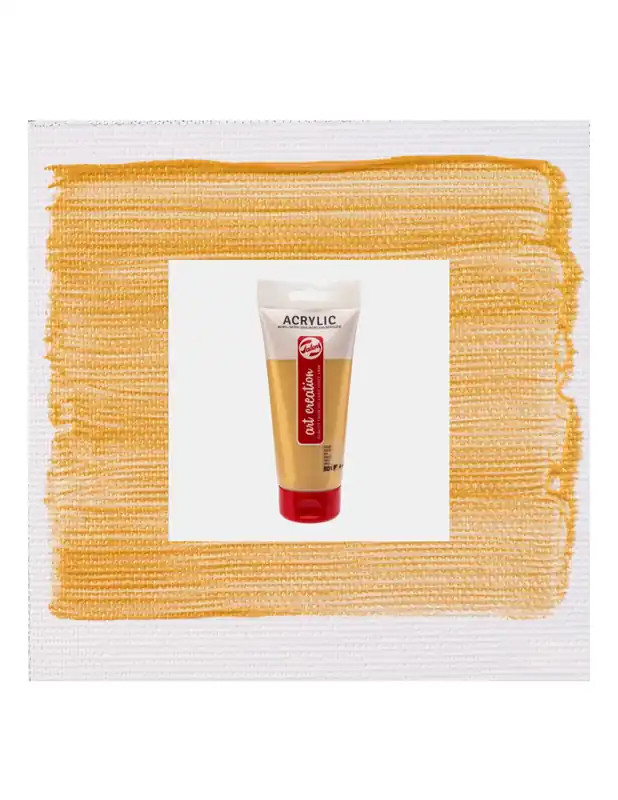 ArtCreation Essentials ofrece un acrílico estudio de calidad fiable a base del 100% de resina de acrilato. La pintura es pastosa, cuando está seca tiene un brillo sedoso y se puede sobrepintar casi de inmediato. La pintura acrílica Talens ArtCreation Essentials puede usarse directamente o diluido con agua, y una vez seco, es resistente al agua. Por su buena adherencia, con esta pintura se puede trabajar sobre cualquier sustrato que sea algo absorbente y esté libre de grasa y polvo, como el lienzo y el papel, pero también el yeso, el tablero, la madera, la piedra o el cementoACRILICO ART CREATION 200ML 801 ORO