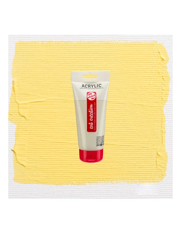 ArtCreation Essentials ofrece un acrílico estudio de calidad fiable a base del 100% de resina de acrilato. La pintura es pastosa, cuando está seca tiene un brillo sedoso y se puede sobrepintar casi de inmediato. La pintura acrílica Talens ArtCreation Essentials puede usarse directamente o diluido con agua, y una vez seco, es resistente al agua. Por su buena adherencia, con esta pintura se puede trabajar sobre cualquier sustrato que sea algo absorbente y esté libre de grasa y polvo, como el lienzo y el papel, pero también el yeso, el tablero, la madera, la piedra o el cementoACRILICO ART CREATION 200ML 226 AMARILLO PASTEL