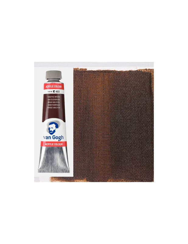 Acrilico Van Gogh de alta calidad, con colores intensos y vivos que se mezcla y trabaja con gran facilidad. Alto grado de pigmentación. La resistencia a la luz que es de buena a excelente, hace que los trabajos conserven su estado original por largo tiempo.ACRILICO VAN GOGH 40ML 403 PARDO VAN DYCK