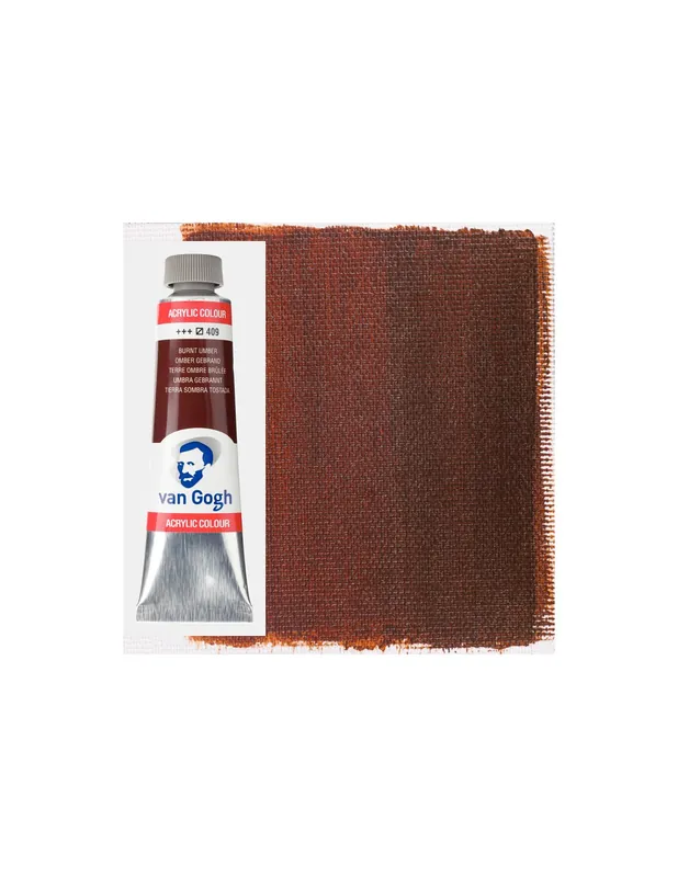 Acrilico Van Gogh de alta calidad, con colores intensos y vivos que se mezcla y trabaja con gran facilidad. Alto grado de pigmentación. La resistencia a la luz que es de buena a excelente, hace que los trabajos conserven su estado original por largo tiempo.ACRILICO VAN GOGH 40ML 409 TIERRA SOMBRA TOSTADA