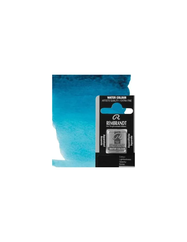LasACUARELArelas Rembrandt están hechas con los pigmentos más puros y la mejor calidad de goma arábiga.Máxima transparencia, los colores conservan su luminosidad, máximo grado de resistencia a la luz.Las ACUARELArelas extra finas Rembrandt están exclusivamante fabricadas con materias primas de primera calidad y siguiendo los métodos de producción más modernos.ACUARELA REMBRANDT MEDIA PASTILLA 522 AZUL TURQUESA S2