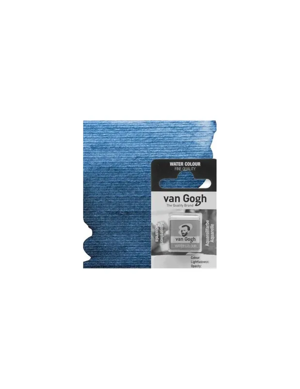 Las acuarelas Van Gogh son unas pinturas transparente de alto poder colorante.Todos los colores van gogh poseen el grado más elevado de resistencia a la luz, los colores se mezclan fácilmente y se pueden deslavar hasta conseguir gran variedad de matices.ACUARELA VAN GOGH MEDIA PASTILLA 846 AZUL INTERFERENCIA
