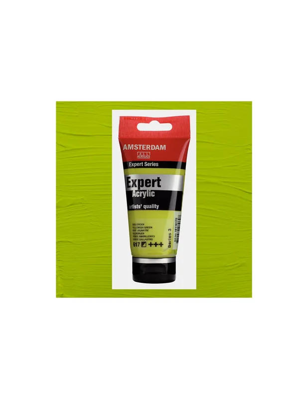 Una pintura acrílica elaborada con sumo cuidado, los mejores ingredientes y una intensidad en sus colores sin precedentes. Todo lo que necesitas para hacer lucir aún más tu talento.ACRILICO AMSTERDAM EXPERT 75ML 617VERDE AMARILLO S3