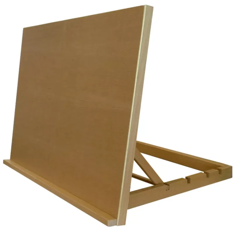 Atril de madera con panel completo de madera para sobremesa.Mesa de trabajo artístico de madera de haya.4 posiciones de inclinación perfecto para pintar y dibujar.Perfecto para trabajar con medidas de hasta DIN A3 42×29,7 cm.Medidas: 50×36,5