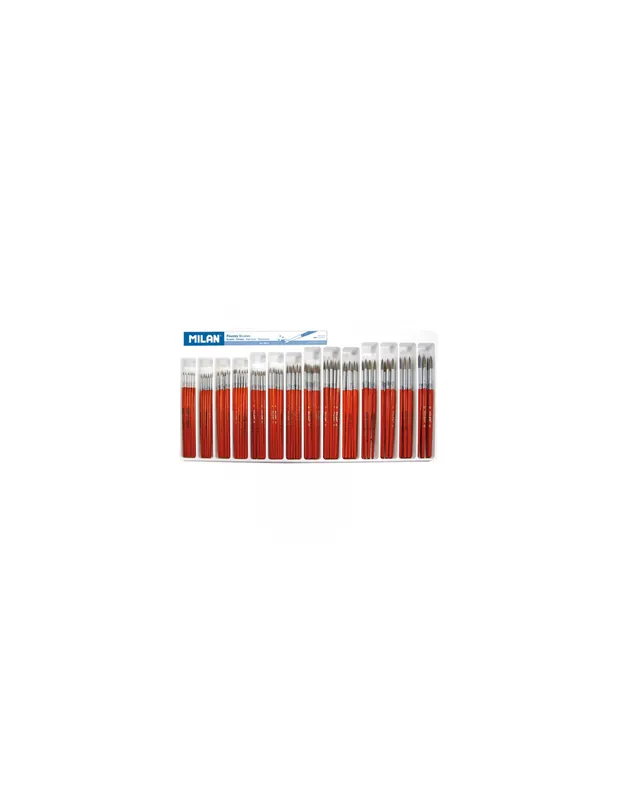 Pinceles redondos con mango corto de madera, barnizados en color marrón y virola de aluminio. Adecuado para acuarela, técnicas acuosas o témpera. Contiene:120 pinceles del nº 00 al 8 (12 pinceles por nº)24 pinceles del nº 9 al 12 (6 pinceles por nº)Composición: 70% pelo natural de cabra y 30% sintético.Formato de venta: 245 x 470 x 25 mm. Peso: 0.55 kg.