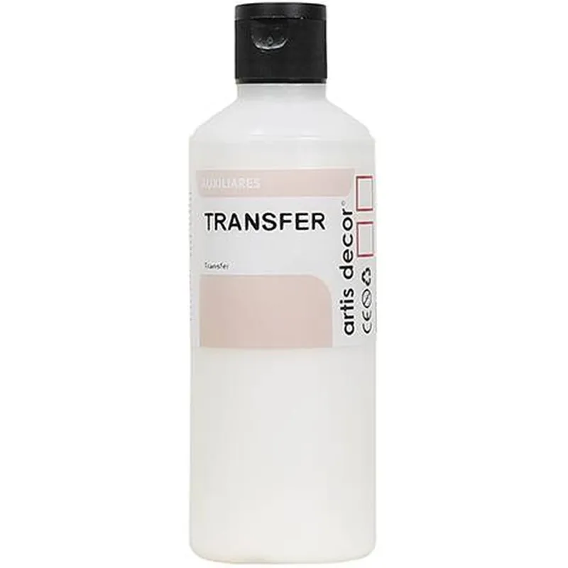 El medium TRANSFER de imágenes ARTIS DECOR permite hacer transferencia de fotos, es un producto que absorbe la tinta de la imagen y crea una película plástica con la imagen, de forma que podemos retirar luego el papel porque toda la imagen quedará en el barniz de transferencia.Podemos decir que es una forma de decoupage avanzada, dónde en vez de pegar la foto en el soporte y barnizar después, añadimos un paso intermedio entre el pegado y el barnizado, que consiste en retirar la pulpa del papel, dejando solamente la imagen.Advertencias:Debe ser una fotocopia láser. (Impresora de tóner, no de cartucho de tinta).Impresa en papel normal, de impresora, no brillo ni de calidad fotográfica, ni plastificado.Podemos usar fotos o láminas, o dibujos de Internet o recortes de revistas.Puede ser en blanco y negro o en color.Podemos comprar imágenes especiales para este trabajo, que se venden como imágenes para hacer transfer.Son simplemente imágenes impresas a láser.Si tiene texto debemos usar la imagen de espejo, para que las letras no queden del revés al hacer la transferencia.