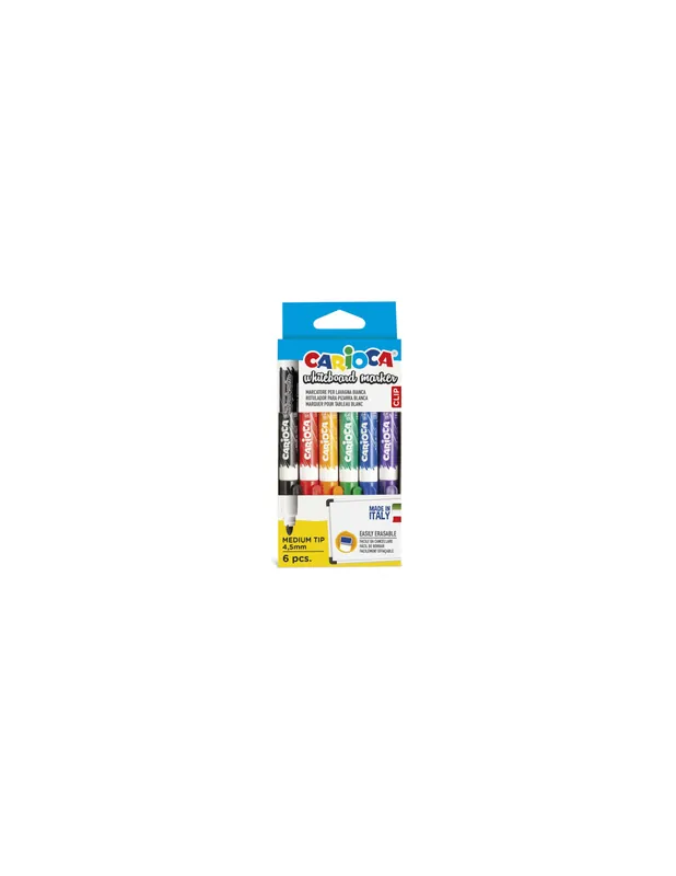 CAJA 6 ROTULADORES CON CLIP PARA PIZARRA BLANCA. SECADO RAPIDO. SE BORRA FACILMENTE. COLORES SURTIDOS.