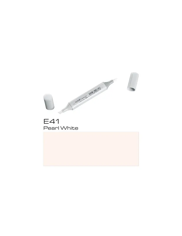 ROTULADOR COPIC SKETCH E41 Pearl WhiteCOPIC SKETCH E41 Pearl WhiteLos rotuladores copic sketch son los rotuladores preferidos de los profesionales del diseño, la ilustración, el dibujo manga y el scrap.Con sus 358 colores tienes todo un mundo de posibilidades a tu alcance, es la mayor gama de colores que existe en rotuladores, dificilmente no encontrarás aquella tonalidad que estás buscando.El rotulador copic sketch tiene dos puntas: una biselada para colorear grandes áreas y otra de pincel muy flexible ideal para dibujar. Las puntas se pueden cambiar cuando se gastan.Son rotuladores recargables, se puede volver a aprovechar la carcasa, con un frasco de tinta copic ink de 25 cc puedes rellenar hasta 12 veces un sketch.La tinta copic es a base de alcohol, es permanente y no es tóxica. Cuando se seca está libre de ácido.Los rotuladores copic sketch se pueden utilizar también con el sistema de aerografia copic.