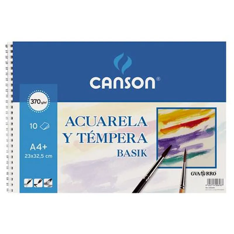 ACUARELA BASIKPapel de color blanco natural de 370 grs/m2, muy bien encolado, de grano ligero.Su elevado gramaje lo convierte en un papel todoterreno de alta resistencia a cualquier técnica húmeda.Idóneo para acuarela escolar, témpera y gouache.