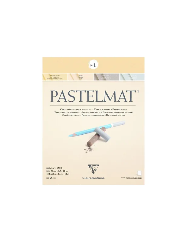 Bloc Clairefontaine Pastelmat de 12 hojas y 360 g/m² está diseñado específicamente para técnicas de pastel, carboncillo y lápiz. Su textura única proporciona una excelente adherencia para medios secos, permitiendo múltiples capas y mezclas con gran facilidad.