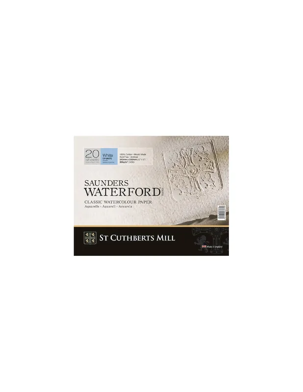 Bloc de Dibujo Acuarela Saunders en tamaño 26x cm está fabricado con papel de 300 g/m², ideal para técnicas acuosas. Su papel prensado en frío ofrece una textura rugosa que proporciona una excelente absorción y retención del agua, ideal para acuarela, gouache y técnicas mixtas.