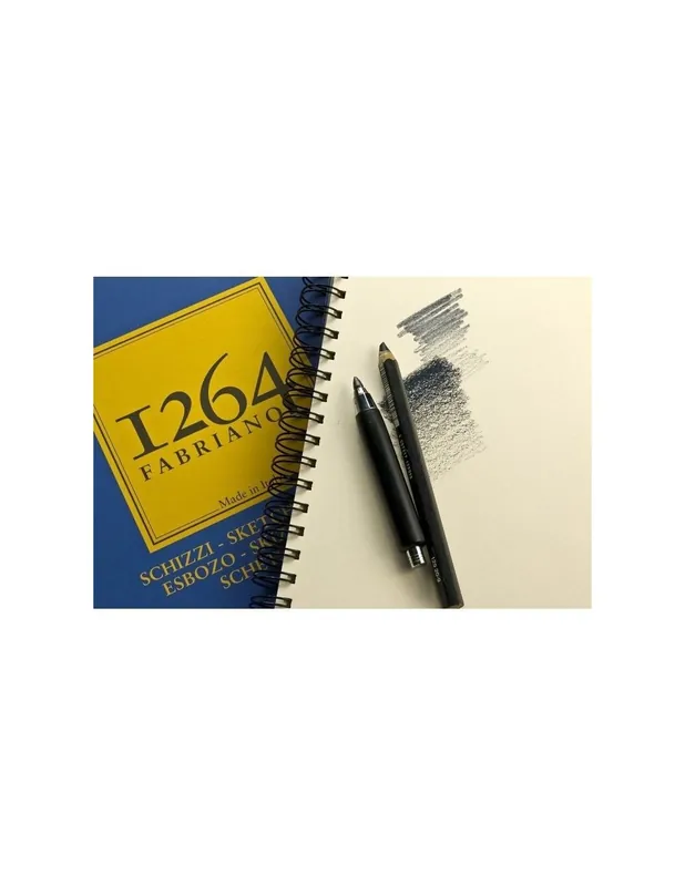 Papel de dibujo blanco marfil de alta calidad de la casa. FabrianoBloc con espiral en la parte superior.Gramaje: 90 g/m², tiene un efecto significativamente más fuerte, se puede borrar bien.Papel sin ácidos con superficie ligeramente granulada