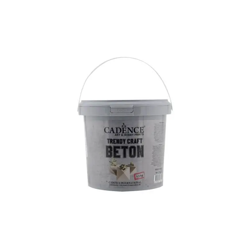 Trendy Craft Beton polvo CADENCE 1,5 kgTRENDY CRAFT BETON: Cemento en polvo CADENCE de secado rápido ideal para usar con moldes y crear elementos decorativos como cuencos bajos, jarrones, candelabros, vasos y similares. Este producto de alta calidad es muy fácil de trabajar con distintos tipos de moldes de plástico, papel maché, silicona.. y fácilmente puede usar en moldes de madera con aceites o desmoldeantes. Resistente a las heladas y a la humedad. Modo de empleo:Proporción de mezcla: 100 g de polvo BETON y 20 ml de agua De acuerdo con la proporción de mezcla especificado, añadir el agua gradualmente al polvo removiendo hasta hacer una mezcla homogenea. Lubricar el molde para su posterior desmoldeado, tienes entre 7 u 8 minutos para verter la mezcla, antes de que esta empiece a endurecerse. Pasados 15 o 20 minutos la superficie se nota seca al tacto. Se recomienda desmoldear al día siguiente para obtener mejores resultados. Los tiempos de secado pueden variar dependiendo de las condiciones climáticas y tipos de moldes.