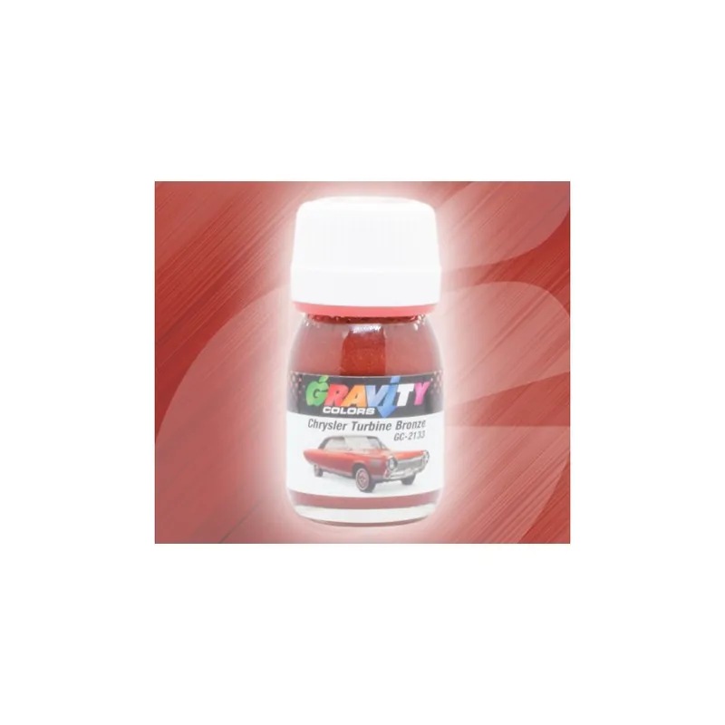 Chrysler Turbine Bronze Gravity Colors Paint– GC-2132Bronze effect color used in 60’s and 70’s by Chrysler Corporation, specially for its Turbine model. Color matched airbrush ready lacquer paint. Net volume: 1 fl.oz/30ml