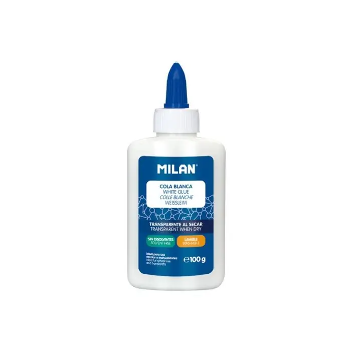 Cola blanca líquida, transparente al secarse. Lavable y sin disolventes. Ideal para uso escolar y manualidades. Pega fácilmente papel, cartulinas, fotografías, tejido, fieltro, corcho, cuero y espuma. Tapón con dosificador que permite una aplicación fácil y precisa.