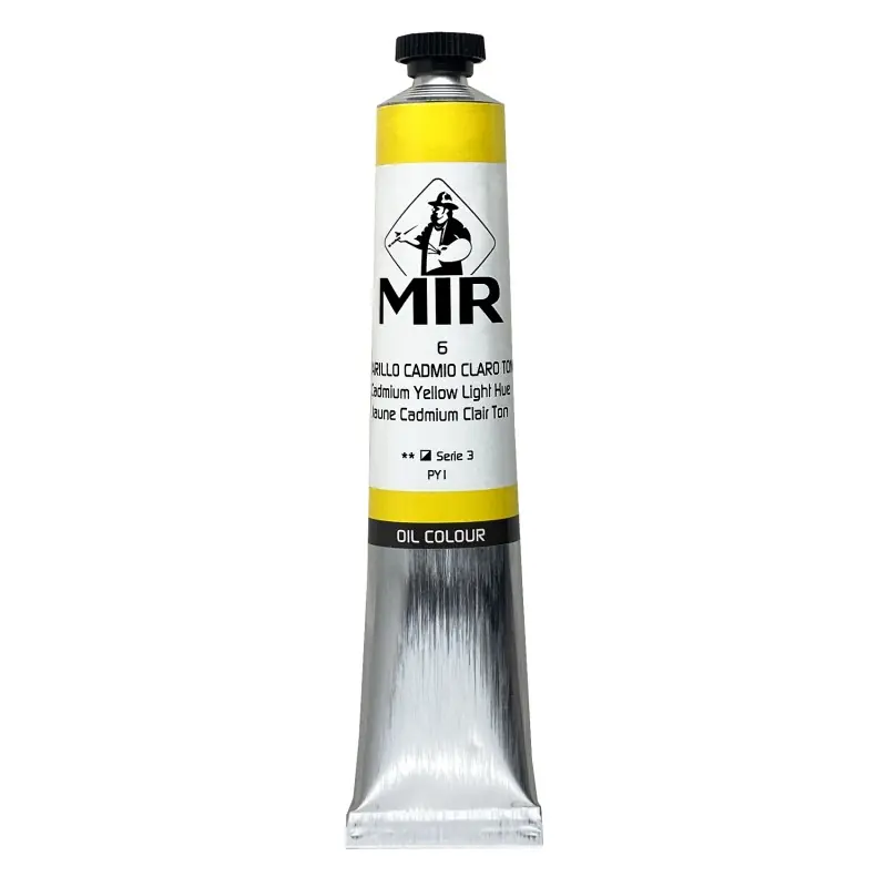 Óleo de calidad extra-fina, constituido por pigmentos específicos para bellas artes, de alta estabilidad a la luz y luminosidad. Los aceites vegetales secantes que componen el óleo Mir son escogidos para que no modifiquen el tono del pigmento, sequen uniformemente en una capa incolora, de máxima transparencia y homogeneidad.Parte fundamental de la fabricación del óleo Mir es el refinado de la pasta inicial de pigmento y aceite. Esta masa se hace pasar a través de unos molinos compuestos por tres rodillos de acero, tantas veces como sea necesario, para conseguir la perfecta dispersión de las partículas de pigmento en el medio del aceite. De esta forma el óleo obtendrá sus características de finura, cremosidad, brillo y poder tintóreo y se favorece la estabilidad en el tiempo de la pintura tanto dentro del tubo como una vez aplicada.Cada pigmento tiene un tiempo de secado natural, diferente según las condiciones de temperatura y humedad. En la fabricación del óleo Mir intentamos acercar los diferentes tiempos de secado a fin de que los colores de una obra sequen de forma pareja pero no queremos con ello comprometer la estabilidad de la pintura por lo que siempre habrán diferencias que el artista asume como consustanciales a la técnica del óleo.La gama de óleo Mir contiene básicamente colores cubrientes complementada con semi y totalmente transparentes. La cubrición es una propiedad intrínseca del pigmento en el medio aceite y el artista sabe hacer uso tanto de los pigmentos que tapan como de aquellos transparentes que le permiten sutiles efectos de veladuras.