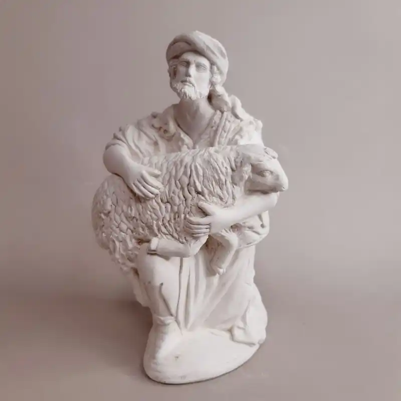 Figura para el portal de Belén, Pastor arrodillado con borregoTamaño aproximado 15 cm.
