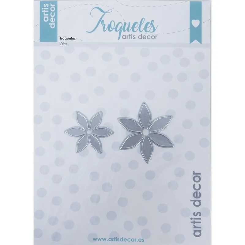 Set de 2 troqueles en forma de flor de Artis Decor.Corta 2 tamaños diferentes de flores:-Tamaño flor 1: 37 x 37 mm-Tamaño flor 2: 47 x 47 mm