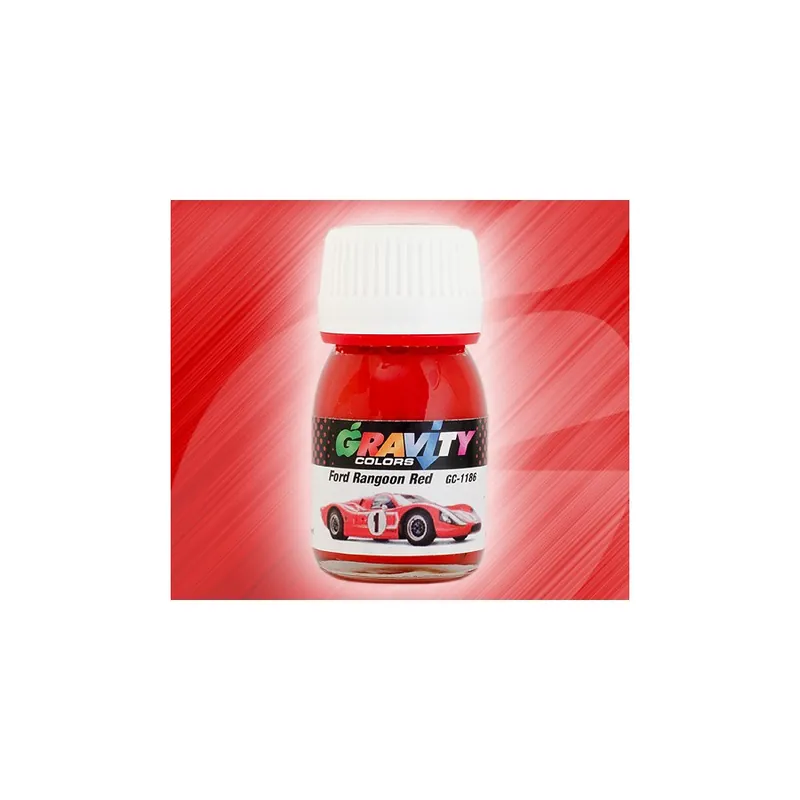 Ford Rangoon Red Gravity Colors Paint– GC-1186Solid red color used by Ford between 1962 and 1979.Color matched airbrush ready lacquer paint. Net volume: 1 fl.oz/30ml