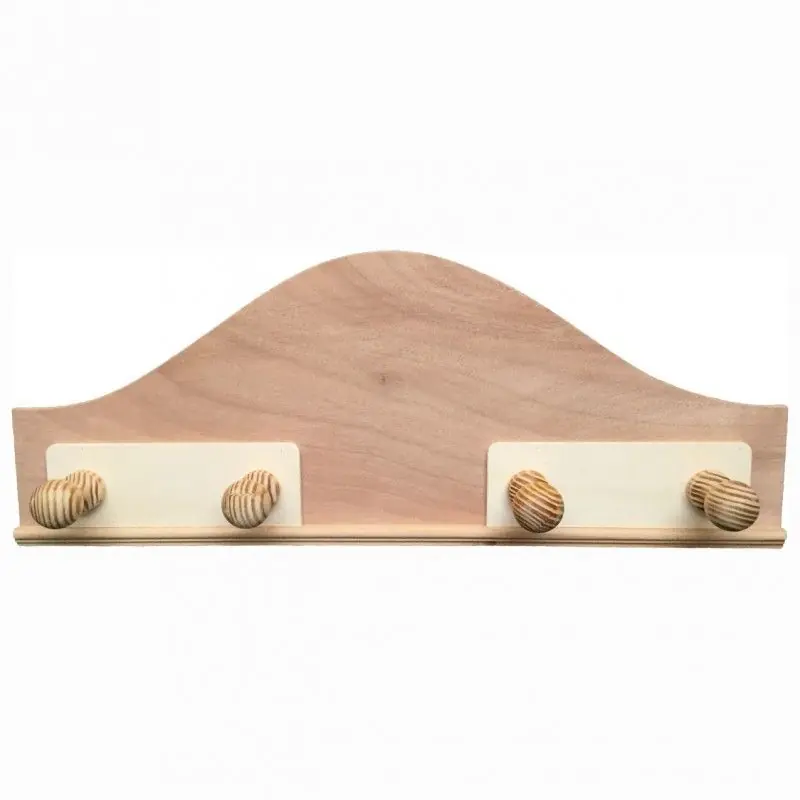 Perchero pared, de madera con cuatro pomos. Está hecho de contrachapado y los pomos de pino.