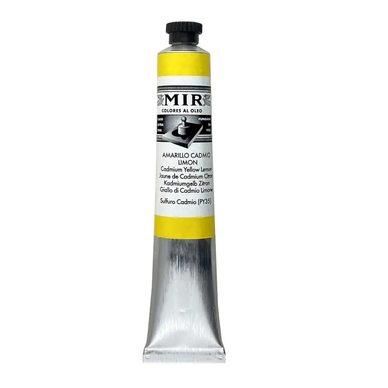 Óleo de calidad extra-fina, constituido por pigmentos específicos para bellas artes, de alta estabilidad a la luz y luminosidad. Los aceites vegetales secantes que componen el óleo Mir son escogidos para que no modifiquen el tono del pigmento, sequen uniformemente en una capa incolora, de máxima transparencia y homogeneidad.Parte fundamental de la fabricación del óleo Mir es el refinado de la pasta inicial de pigmento y aceite. Esta masa se hace pasar a través de unos molinos compuestos por tres rodillos de acero, tantas veces como sea necesario, para conseguir la perfecta dispersión de las partículas de pigmento en el medio del aceite. De esta forma el óleo obtendrá sus características de finura, cremosidad, brillo y poder tintóreo y se favorece la estabilidad en el tiempo de la pintura tanto dentro del tubo como una vez aplicada.Cada pigmento tiene un tiempo de secado natural, diferente según las condiciones de temperatura y humedad. En la fabricación del óleo Mir intentamos acercar los diferentes tiempos de secado a fin de que los colores de una obra sequen de forma pareja pero no queremos con ello comprometer la estabilidad de la pintura por lo que siempre habrán diferencias que el artista asume como consustanciales a la técnica del óleo.La gama de óleo Mir contiene básicamente colores cubrientes complementada con semi y totalmente transparentes. La cubrición es una propiedad intrínseca del pigmento en el medio aceite y el artista sabe hacer uso tanto de los pigmentos que tapan como de aquellos transparentes que le permiten sutiles efectos de veladuras.