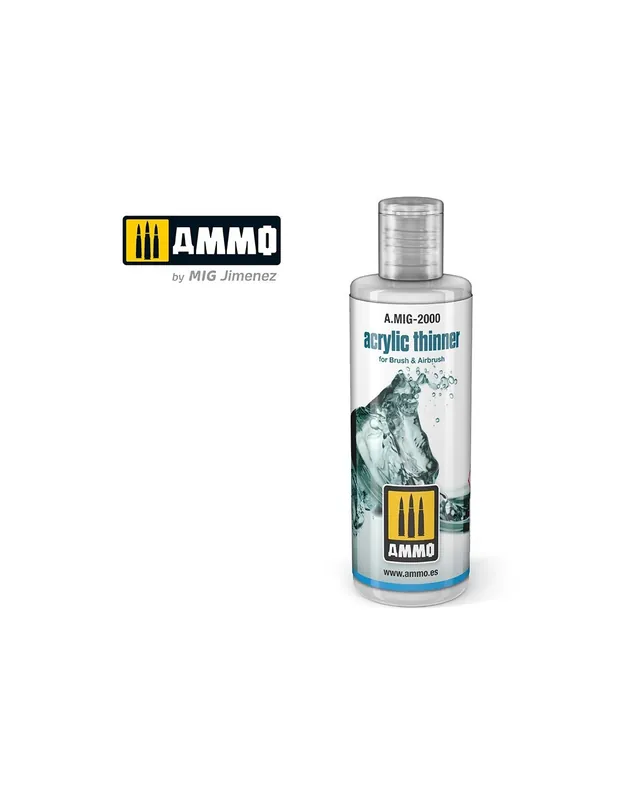 Diluyente para acrílicos de base agua diseñado específicamente para su uso con los acrílicos de AMMO, pero compatible también con otras marcas de acrílicos. Inodoro y no tóxico.