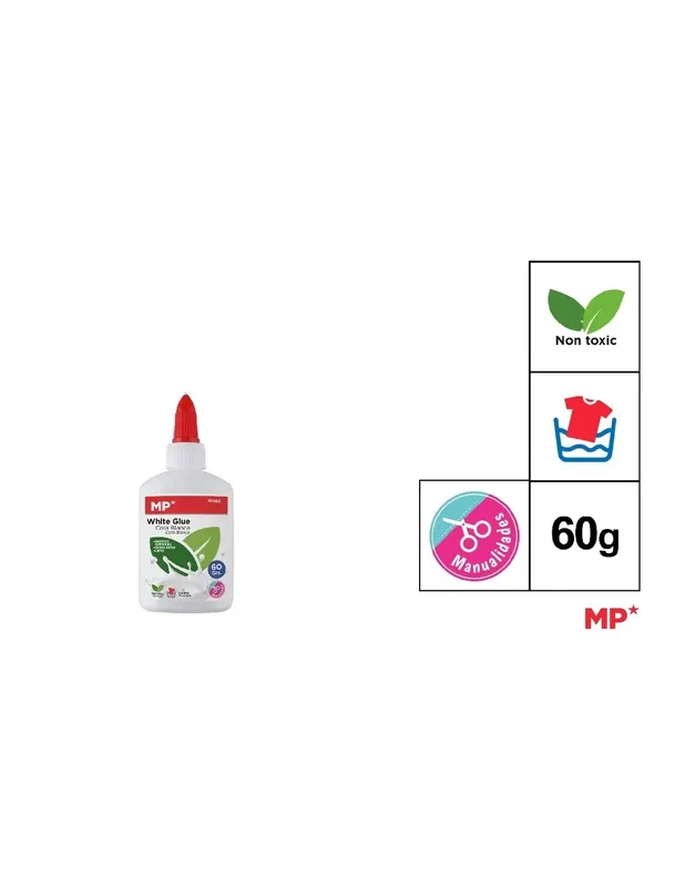 Cola blanca, pegamento escolar. Para manualidades y múltiples superficies. No arruga el papel. Con dosificador y de secado rápido