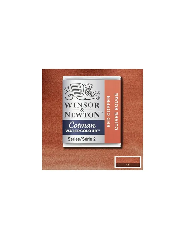 Viveza, transparencia y pureza de color. Gama de colores complementaria de la serie Artists’ de Winsor & Newton, caracterizada por una concentración menor de pigmento y la sustitución de los pigmentos más caros por otros más económicos. Así, W&N consigue a un precio único una acuarela de excelente poder colorante y optima transparencia a precio muy asequible. WINSOR & NEWTON ACUARELA COTMAN 1/2 GODET COBRE ROJO