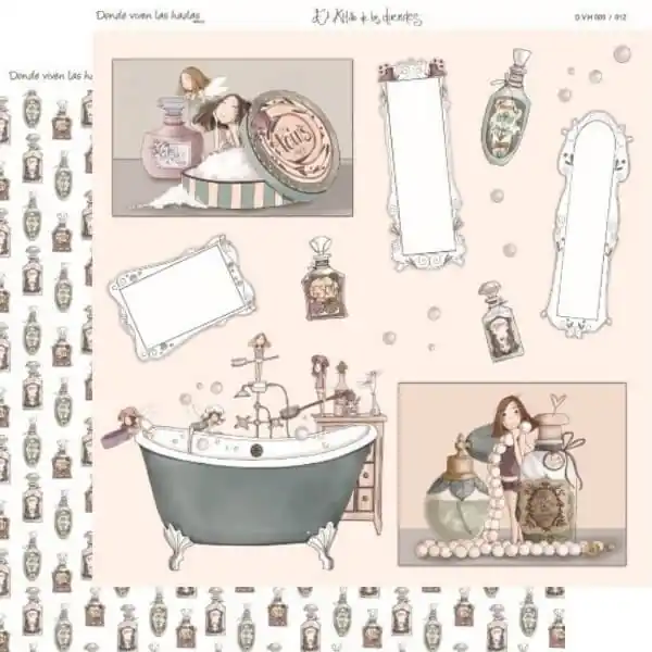 PAPEL SCRAP SUELTO de EL ALTILLO DE LOS DUENDES. Colección DONDE VIVEN LAS HADAS. Papel 5/12.Doble cara30x30 cmEl Altillo de los Duendes190 gr.