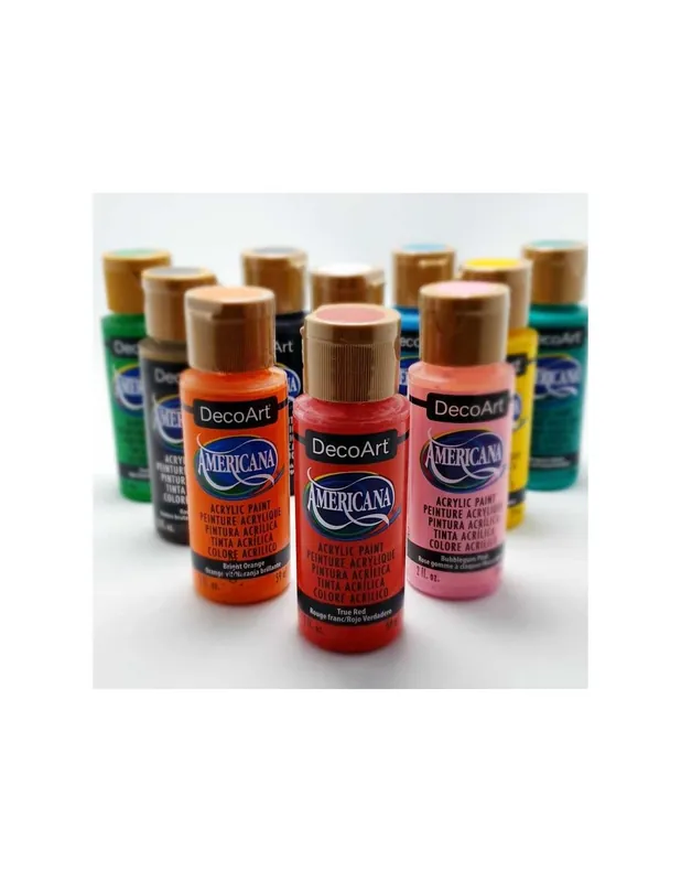 Acrilicos Americana de Deco Art 59ml ¡compra ahora al mejor precio!El acrílico más conocido y versatil para manualidades, la mejor relación calidad precio y el mayor surtido.Disponible en mate y metalizado, se puede utilizar en una infinidad de soportes y técnicas con una aplicación facil.Selecciona color al hacer tu pedido en la lista de abajo