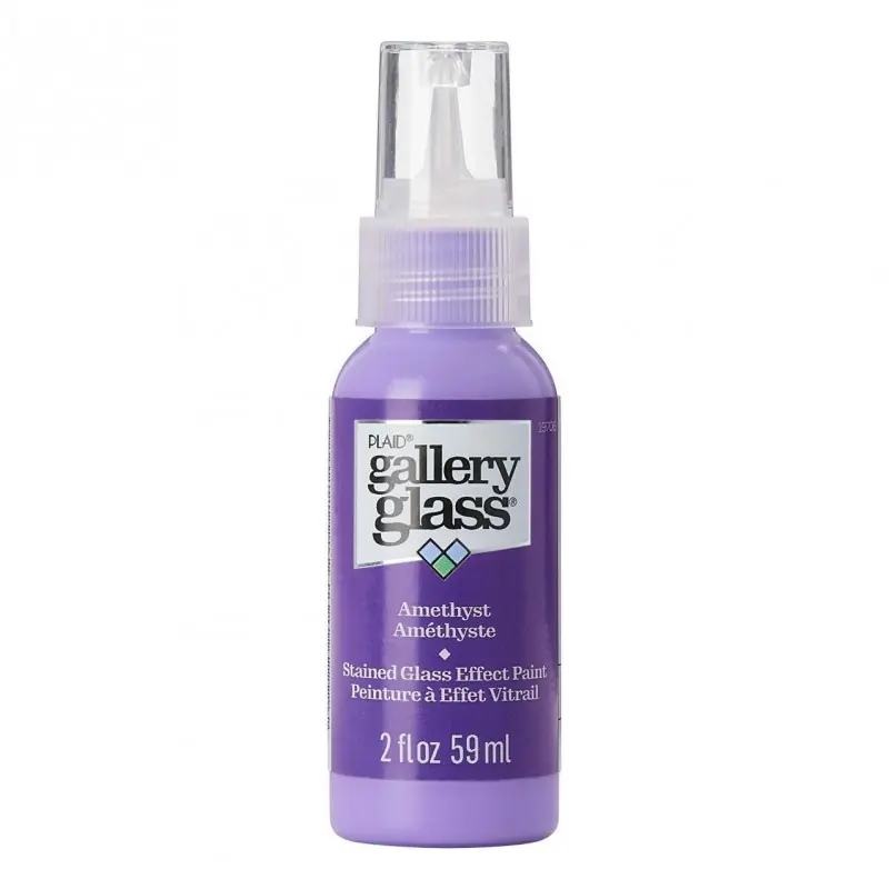 Descubre la pintura Gallery Glass FolkArt Amethyst (59 ml), diseñada para dar un efecto falso Tiffany realista y brillante a tus proyectos de manualidades. Con esta pintura podrás crear diseños únicos en vidrio y otras superficies lisas sin necesidad de cortes, moldes o soldadura.Características principalesEfecto vitral auténtico: colores vibrantes con un acabado suave y brillante.Aplicación sencilla: se aplica directamente sobre vidrio, espejos, plástico, frascos, jarrones o ventanas. Funciona tanto en superficies horizontales como verticales sin gotear.Limpieza fácil: mientras la pintura está húmeda, los excesos se eliminan simplemente con un papel.Fórmula segura: a base de agua, no tóxica.Secado y curado: seca al tacto en 24 horas y alcanza el curado completo en 7 días, dependiendo de las condiciones ambientales.Versatilidad: permite crear diseños permanentes o adhesivos decorativos reutilizables que se pueden despegar y recolocar.Formato práctico: bote de 59 ml, ideal para proyectos pequeños o para añadir detalles en combinación con otros colores.Instrucciones de usoLimpia bien la superficie con alcohol o jabón y sécala completamente.Si deseas un contorno en relieve, utiliza primero «Liquid Leading», aplicándolo desde el centro hacia afuera y manteniendo el aplicador a unos 2 cm para lograr un trazo uniforme.Una vez seco el contorno, rellena con la pintura Gallery Glass hasta nivelar con el borde o dejando parte visible para resaltar el efecto.Elimina posibles burbujas golpeando suavemente la superficie por debajo.Deja secar durante 24 horas y espera 7 días para un curado total antes de manipular la pieza.Ideas creativasDiseña suncatchers y figuras decorativas que brillan con la luz.Personaliza frascos, botellas y jarrones para regalos o decoración del hogar.Crea adhesivos temporales para ventanas con motivos estacionales o temáticos.Ideal tanto para principiantes como para artistas de manualidades avanzados.Por qué elegir Gallery Glass Ruby RedAcabado profesional sin necesidad de experiencia previa.Fórmula limpia y segura para trabajar cómodamente.Producto de una marca reconocida en el mundo de las manualidades.Máxima versatilidad para proyectos permanentes o temporales.✨ Dale un toque vibrante y elegante a tus creaciones con la pintura Gallery Glass Ruby Red efecto vitral. Convierte cualquier superficie lisa en una pieza artística con un auténtico efecto vitral.