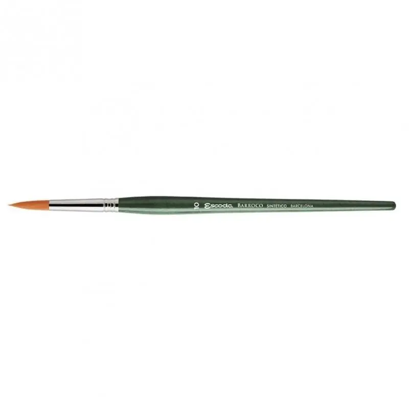Serie Barroco de Escoda. Una de las referencias más populares para la acuarela. Fibra de características muy similares a la del Toray blanco, sin embargo en ésta hay una combinación de diámetros superiores y por tanto con más nervio o temple. Puntea igualmente consiguiendo que se pueda trabajar con un solo número de pincel, mediano o grande, para toda una obra.