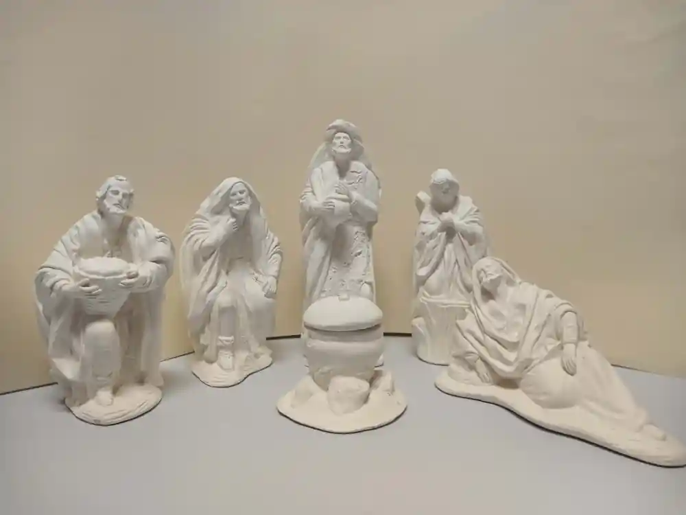Figura de escayola para decorar.Se recomienda usar previamente tapaporos, para preparar mejor la supeficie para la pintura, logrando además que absorba menor cantidad de la misma, y pudiendo también finalmente usarlo como barniz protector de la pieza terminada.Se venden las 6 piezas juntas, el precio es por las 6.