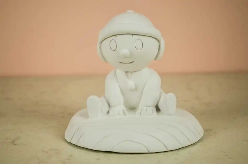 Figura de escayola para decorar.Se recomienda usar previamente tapaporos, para preparar mejor la supeficie para la pintura, logrando además que absorba menor cantidad de la misma, y pudiendo también finalmente usarlo como barniz protector de la pieza terminada.