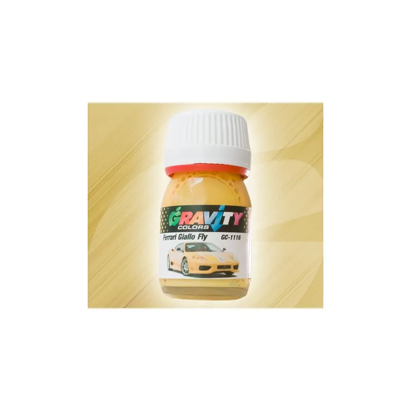 Ferrari Giallo Fly Gravity Colors Paint– GC-1116 Solid yellow color used by Ferrari since 70’s. Color matched airbrush ready lacquer paint. Net volume: 1 fl.oz/30ml
