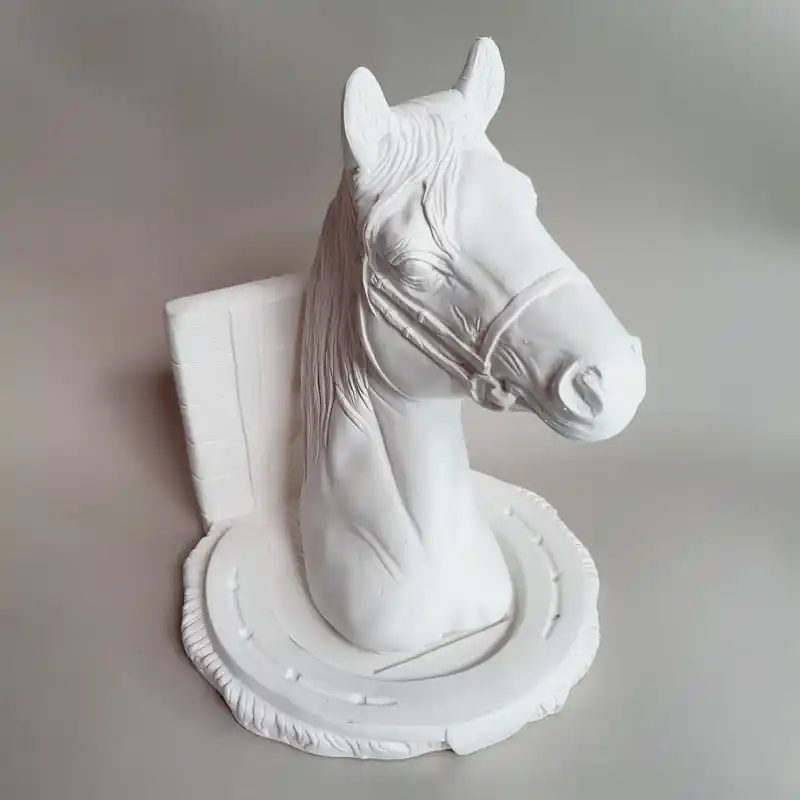 Figura de escayola Sujetalibros cabeza de caballo 23cmOrganiza tus libros con estilo y gracia con nuestro sujeta libros caballo. Esta pieza no solo agrega un toque de elegancia a tu estantería, sino que también mantiene tus libros en su lugar de manera segura. Hecho con atención al detalle y artesanía de calidad, este sujeta libros es una adición encantadora y funcional a cualquier hogar. Descubre el equilibrio perfecto entre belleza y utilidad con nuestro sujeta libros caballo