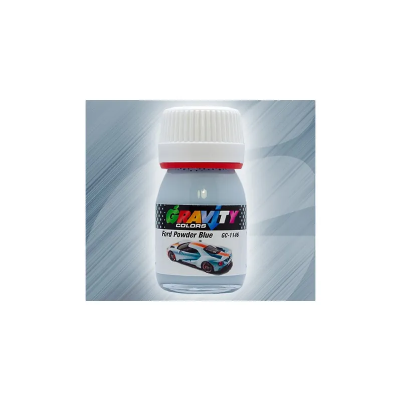 Ford Powder Blue Gravity Colors Paint– GC-1146 Solid light blue color, used for Ford GT since 2018. Color matched airbrush ready lacquer paint. Net volume: 1 fl.oz/30ml