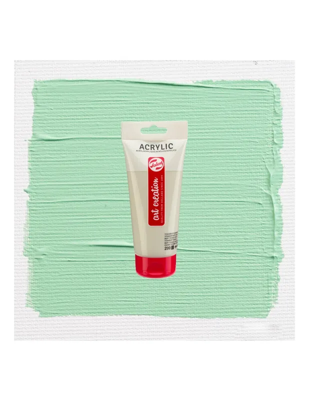 ArtCreation Essentials ofrece un acrílico estudio de calidad fiable a base del 100% de resina de acrilato. La pintura es pastosa, cuando está seca tiene un brillo sedoso y se puede sobrepintar casi de inmediato. La pintura acrílica Talens ArtCreation Essentials puede usarse directamente o diluido con agua, y una vez seco, es resistente al agua. Por su buena adherencia, con esta pintura se puede trabajar sobre cualquier sustrato que sea algo absorbente y esté libre de grasa y polvo, como el lienzo y el papel, pero también el yeso, el tablero, la madera, la piedra o el cementoACRILICO ART CREATION 200ML 666 VERDE PASTEL