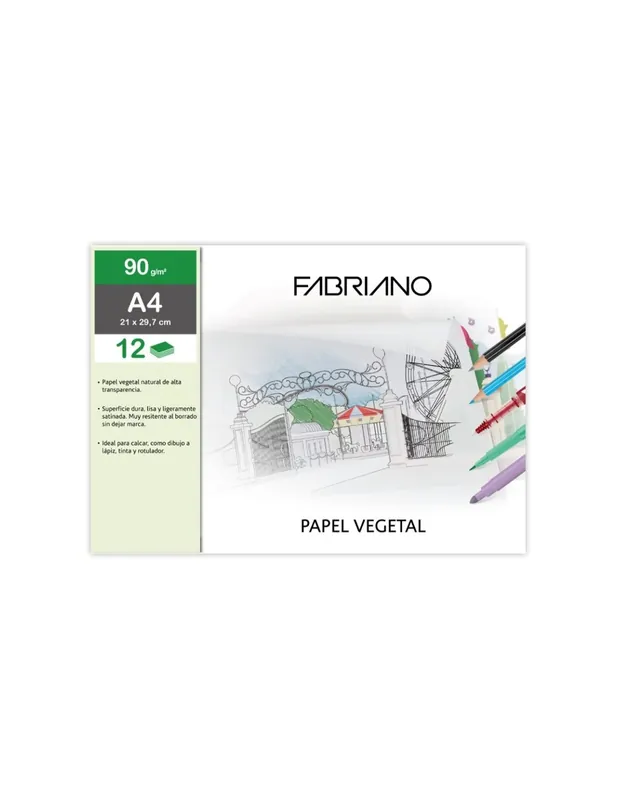 Papel vegetal de elevada transparencia y superficie regular y satinada.Ofrece dureza superficial e interna, resistencia al envejecimiento y nitidez al trasluz.Papel idóneo para dibujo a lápiz, tinta y para calcar.
