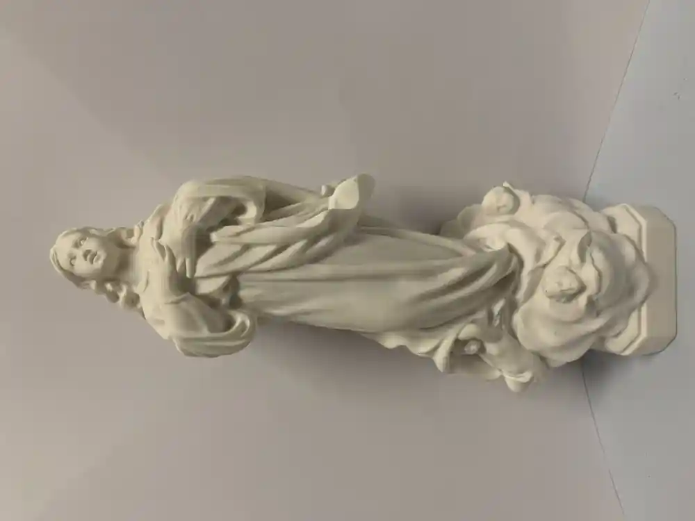 Figura de marmolina (alabastro). Más resistente que la escayola y de mejor acabado. Además no es porosa, por lo que no necesita el uso de tapaporos.Peso: 1,45 kgs.