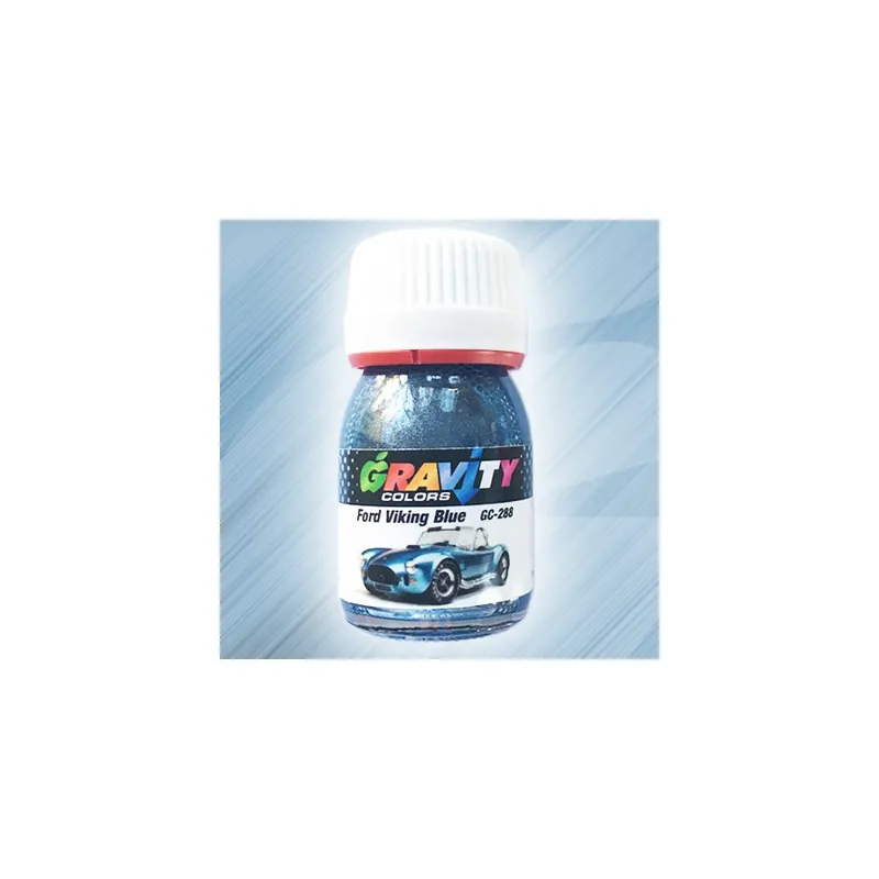 GC-288 Ford Viking Blue de Gravity ColorsColor azul claro metalizado usado por Ford desde la década de los 60. Color exacto listo para pintar con aerógrafo. Volumen Neto: 30ml/1 fl.oz