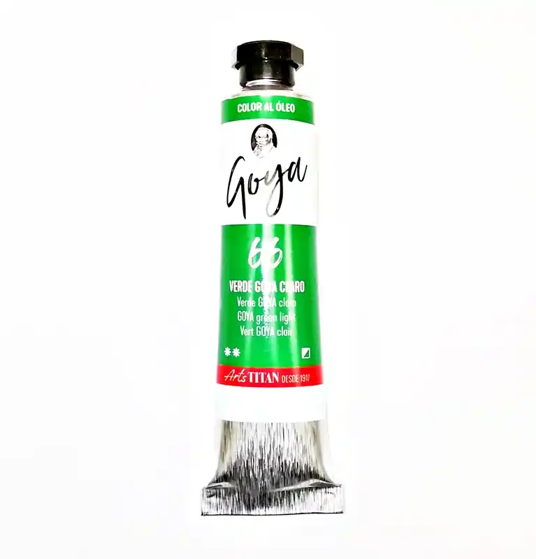 TITAN Óleo Goya 20ml especial para aplicar sobre lienzos de lino, algodón u otros, debidamente preparados. (Colores según carta cromática del fabricante. Pueden variar) También puede aplicarse sobre otros soportes, como madera, táblex, cartón, etc., siempre que estén impermeabilizados con una adecuada preparación, para que tengan una buena adherencia.Secado a 23ºC 60 % HR: 1 día – 15 días (según pigmentación).Los tiempos de secado, se corresponden a una aplicación de un grosor aproximado entre 0,1 y 0,5 mm.Métodos de Aplicación: Pincel, paletina o espátula. Limpieza de utensilios: Limpia Pinceles.Presentación: Tubos: 20 ml, 60 ml, Tubo blanco: 20 ml, 60 ml y 150 ml